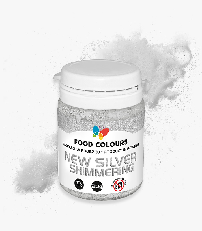 Metallic powder for quick and impressive decoration of surfaces and masses: cakes, creams, jellies, and gels, praline molds, chocolate, marzipan, and sugar decorations. The powder is in the form of a glittery powder intended for manual application with a brush. It creates a sparkling glitter effect. It is also used for decorating alcoholic beverages and drinks.