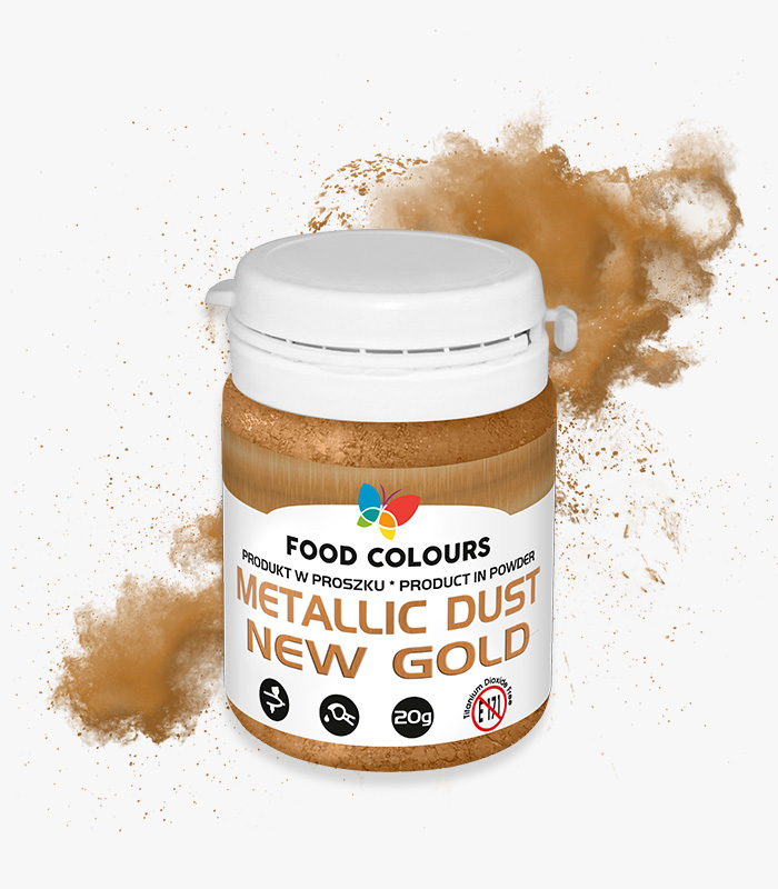 Metallic powder for quick and impressive decoration of surfaces and masses: cakes, creams, jellies and gels, praline molds, chocolate, marzipan, and sugar decorations. Due to its fine, pearly powder form, it can be applied manually with a brush or used with an airbrush. It creates a satin pearl effect. It is also used for decorating alcohols and drinks.