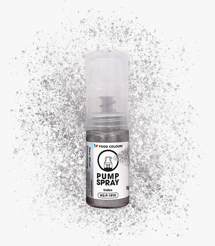 Metaliczny pyłek w postaci suchego sprayu do szybkiego i efektownego dekorowania powierzchni i mas: tortów, kremów, galaretek i żeli, form do pralin, czekolady, marcepanów i dekoracji cukrowych.